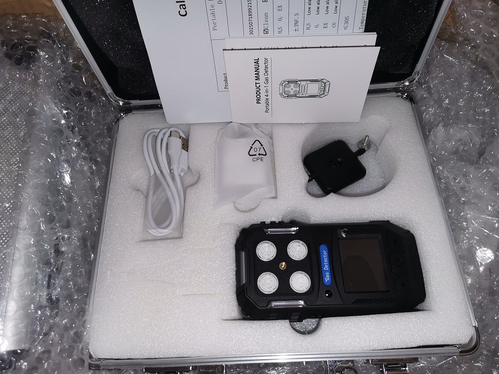 The Portable Multi Gas Detector is carefully packaged to ensure its safety during transit. It is wrapped in bubble wrap and placed in a sturdy cardboard box to prevent any damage. The package includes the gas detector unit, user manual, charging cable, and any additional accessories.